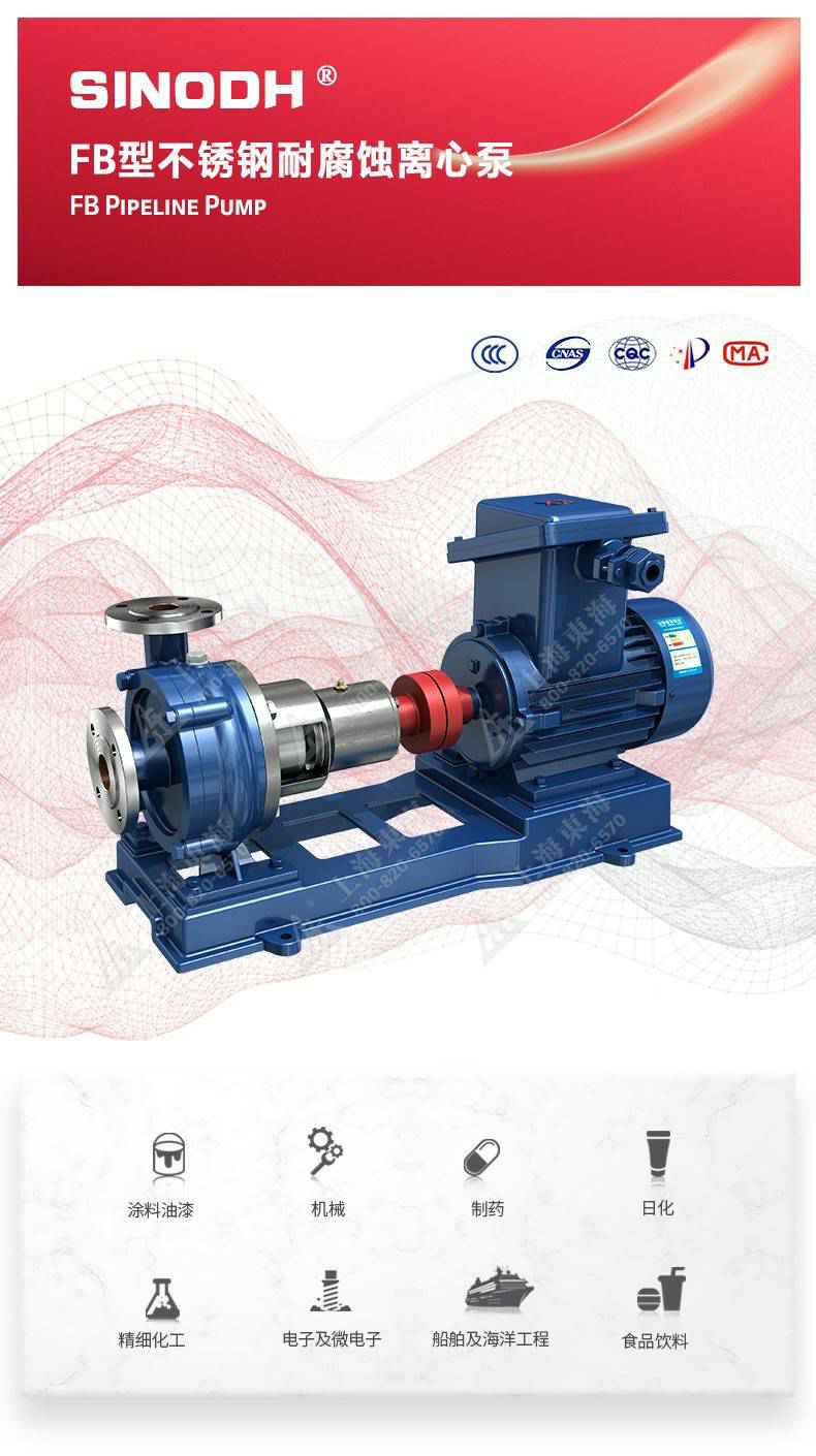 FB型不锈钢单级单吸悬臂式耐腐蚀离心泵,为扬州绍辉电子元器件供应有限公司自主研发生产。本系列产品适用于输送不含固体颗粒,有腐蚀性液体。被输送介质温度为-20℃~200℃,泵的进口压力不能大于0.2MPa,广泛用于石油、化工、冶金、合成纤维、制药、食品、酿造等工业部门,也可供工矿、企业及城市供水、排水之用。